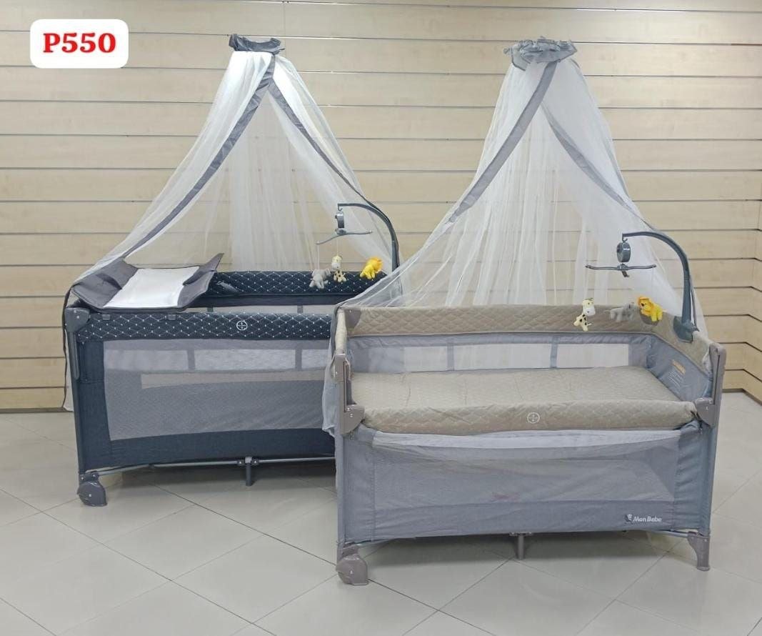 Lit parc plus plan à langer, mobile et voile moustiquaire multifonctions, très pratique !
