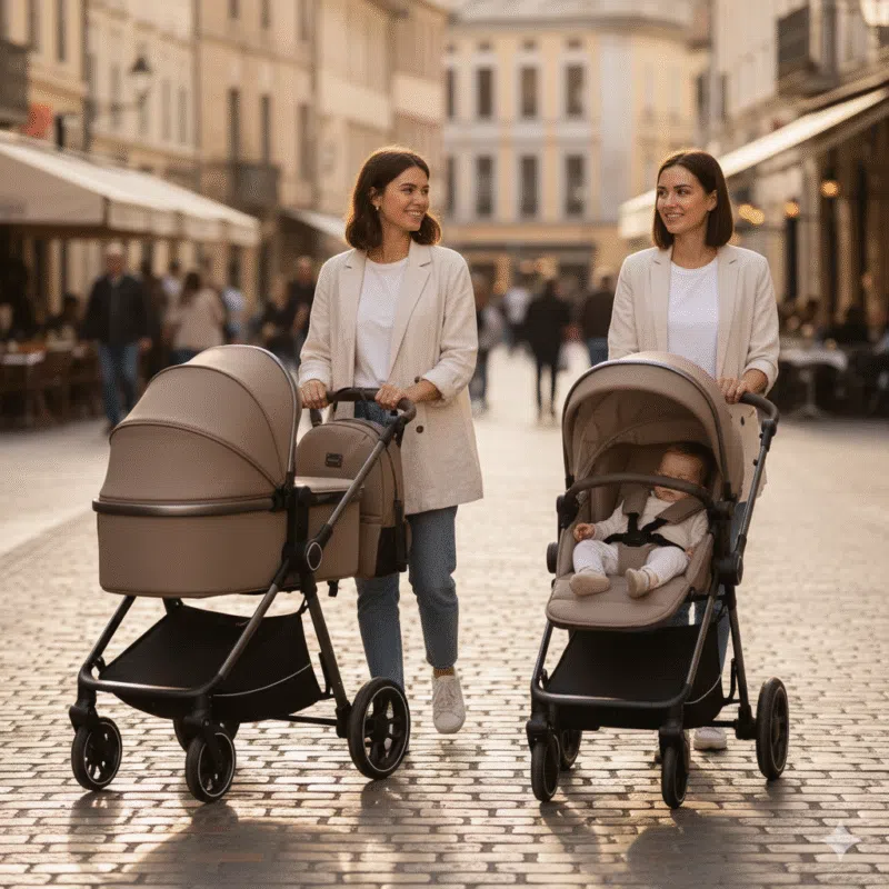 La poussette est utilisable comme berceau bébé avec poignée de transport pratique, elle est équipée d’un siège réversible, qui peut être installé dans deux positions : face à la route ou dos à la route. C’est particulièrement pratique pour les promenades par mauvais temps ou lorsque le soleil brille.