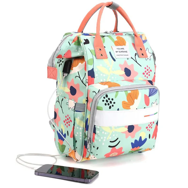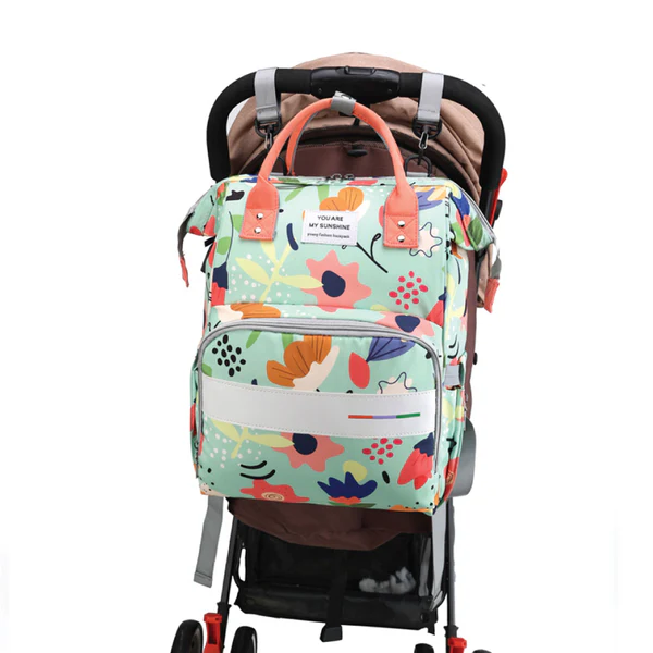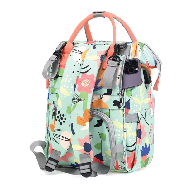 Sac à dos à langer pour bébé – Motif floral coloré